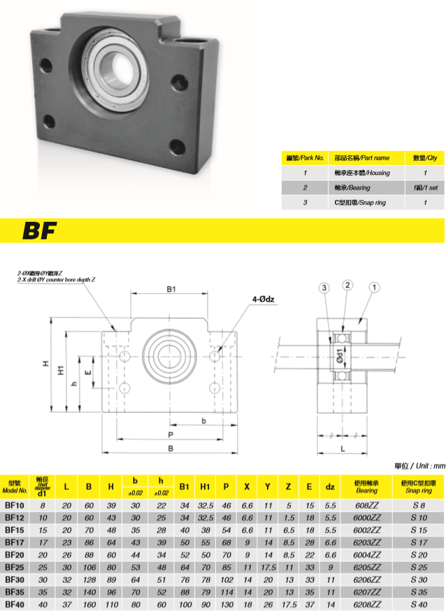 支撐座是在絲杠和螺母之間以滾珠為滾動(dòng)體的螺旋傳動(dòng)元件,固定側(cè)的支撐單元裝有經(jīng)預(yù)壓調(diào)整的JIS5級的角接觸球軸承,支撐側(cè)的支撐單元使用深溝球軸承,它是一種精密、高效率、高剛度、高壽命且具有穩(wěn)定的回轉(zhuǎn)性能的先進(jìn)傳動(dòng)元件,可將電動(dòng)機(jī)的旋轉(zhuǎn)運(yùn)動(dòng)轉(zhuǎn)化為工作臺的直線運(yùn)動(dòng),常見系列為BK、BF、EK、EF、FK、FF等。