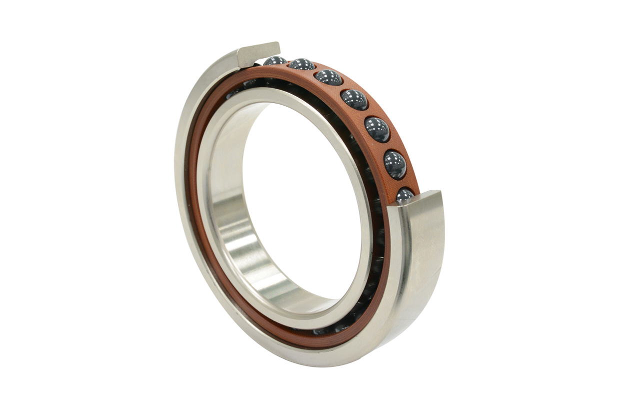 角接觸球軸承是應用最為廣泛的軸承,形狀類似于深溝球軸承,比較適合高速運轉的場合。一個套圈只有一個擋邊,另外一邊是斜坡,形成一定角度的接觸角,一般是成對使用。