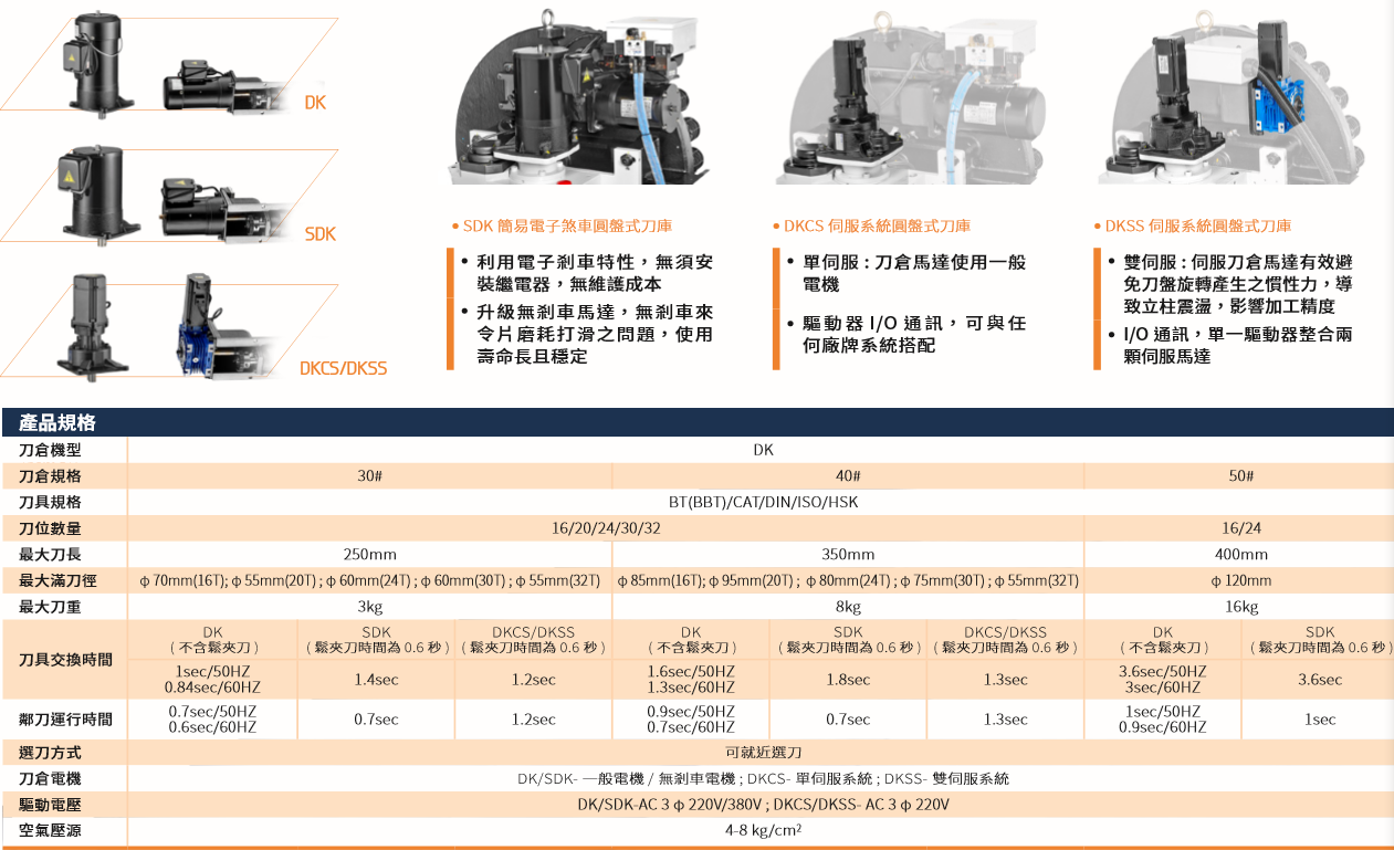 圓盤式刀庫通常應用在立式綜合加工機上,一般稱為機械式刀庫或刀臂式刀庫,通常由一個圓盤刀倉和一個凸輪換刀機構組成。