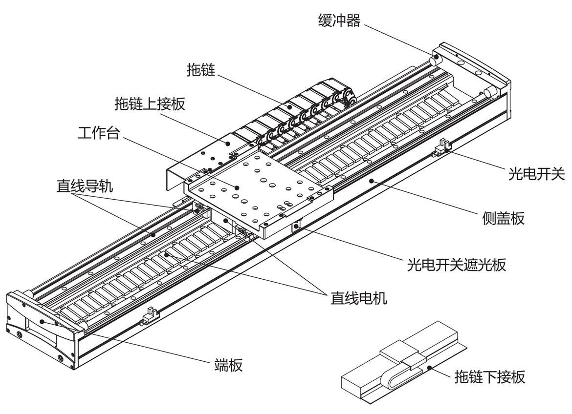 直線電機是一種將電能直接轉(zhuǎn)換成直線運動機械能,而不需要任何中間轉(zhuǎn)換機構的傳動裝置,它可以看成是一臺旋轉(zhuǎn)電機按徑向剖開,并展成平面而成,通常由線圈、永磁體、支撐導軌、拖鏈、感應開關,外部型材等組成。