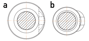 若有需要時亦可縮小螺帽外徑,循環管組件超出其圓周的「管凸出型(V)」,如圖b所示 。